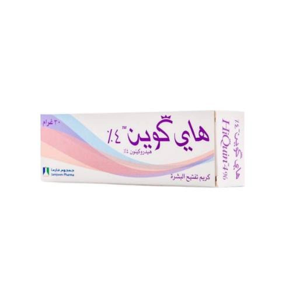 هاي كوين 4% كريم:هاي كوين هو دواء يستخدم لتبييض البشرة شديدة الإسمرار بشكل تدريجي ، وعلى سبيل المثال في حالات مثل الكلف ( قناع الحمل عند الحوامل ) وتبقع الجلد الميلانيني والنمش وتكونات البقع من جراء الشيخوخة، وكذلك في المناطق غير المرغوب فيها، التي تحوي إسمرار متزايد عن زيادة تكون الميلانين في الجلد .